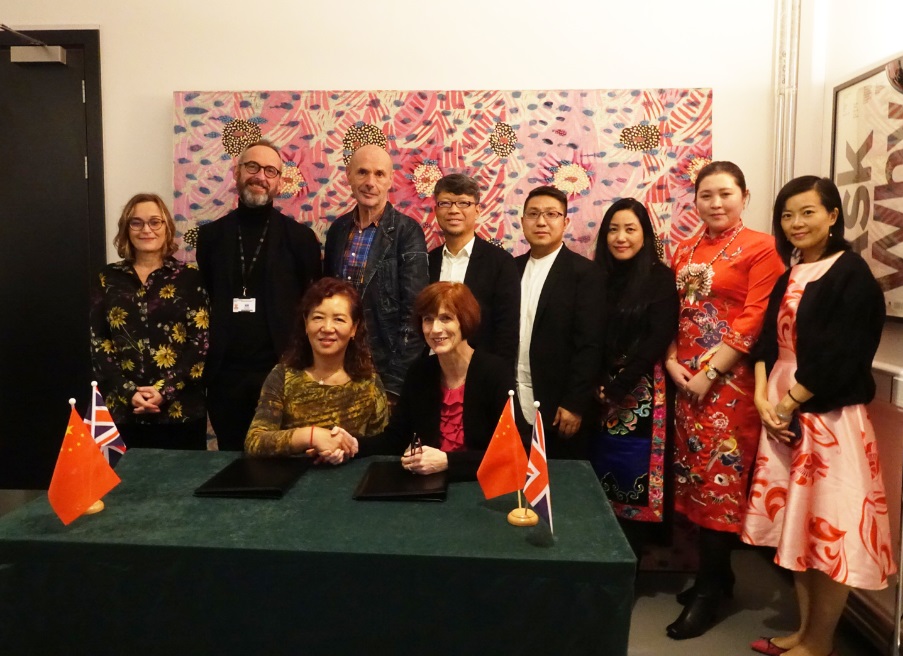 展演前,袁孟红代表学院与曼彻斯特城市大学国际部主任阿毕盖尔·格雷乔莉(Abigail Gregory)签署两校教学合作协议。